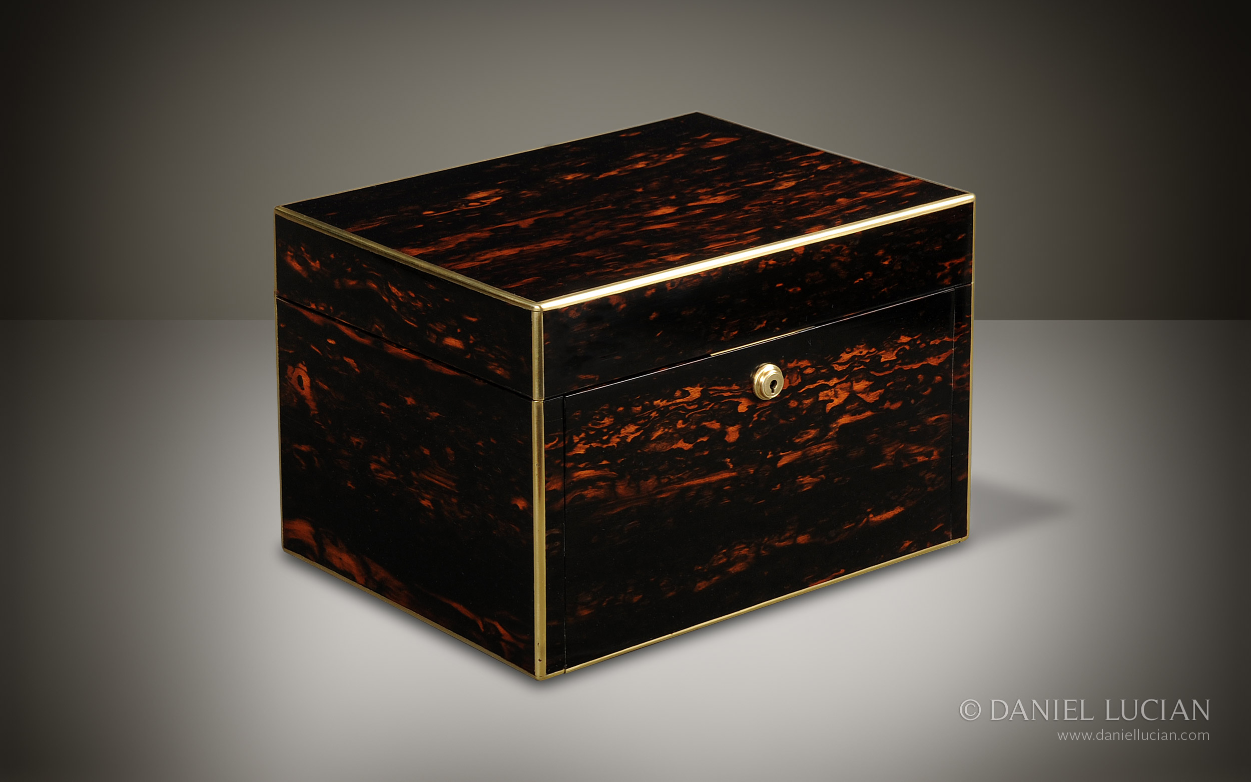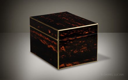 Dating from the 1860s, this antique jewellery box is veneered in Coromandel wood with fine brass edging.