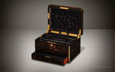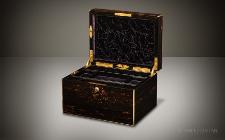 This Coromandel antique jewellery box dates from the 1870's. It was manufactured by the highly respected English cabinetmakers and retailers, Howell, James & Co, who established their reputation for excellence at the Great Exhibition of 1851 and International Exhibition of 1862.
